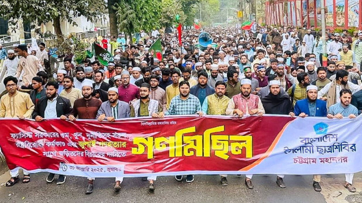 আজ শুক্রবার (৩১ জানুয়ারি) জুমার নামাজ শেষে আন্দরকিল্লা শাহী জামে মসজিদ থেকে মিছিলটি শুরু হয়। বিভিন্ন সড়ক প্রদক্ষিণ করে নগরীর নিউমার্কেট মোড়ে এসে সংক্ষিপ্ত সমাবেশের মাধ্যমে শেষ হয়।